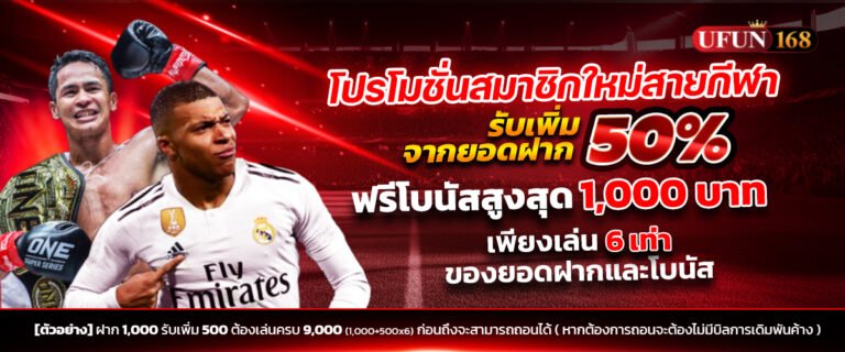 UFUN168 สล็อตแตกหนัก มอบโปรโมชั่นสมาชิกใหม่สายกีฬา ฝากรับเพิ่ม 50% ที่ทั้งคุ้มค่าและใช้งานง่าย พร้อมเงื่อนไขที่ไม่ซับซ้อน ช่วยเพิ่มโอกาสในการทำกำไรได้จริง